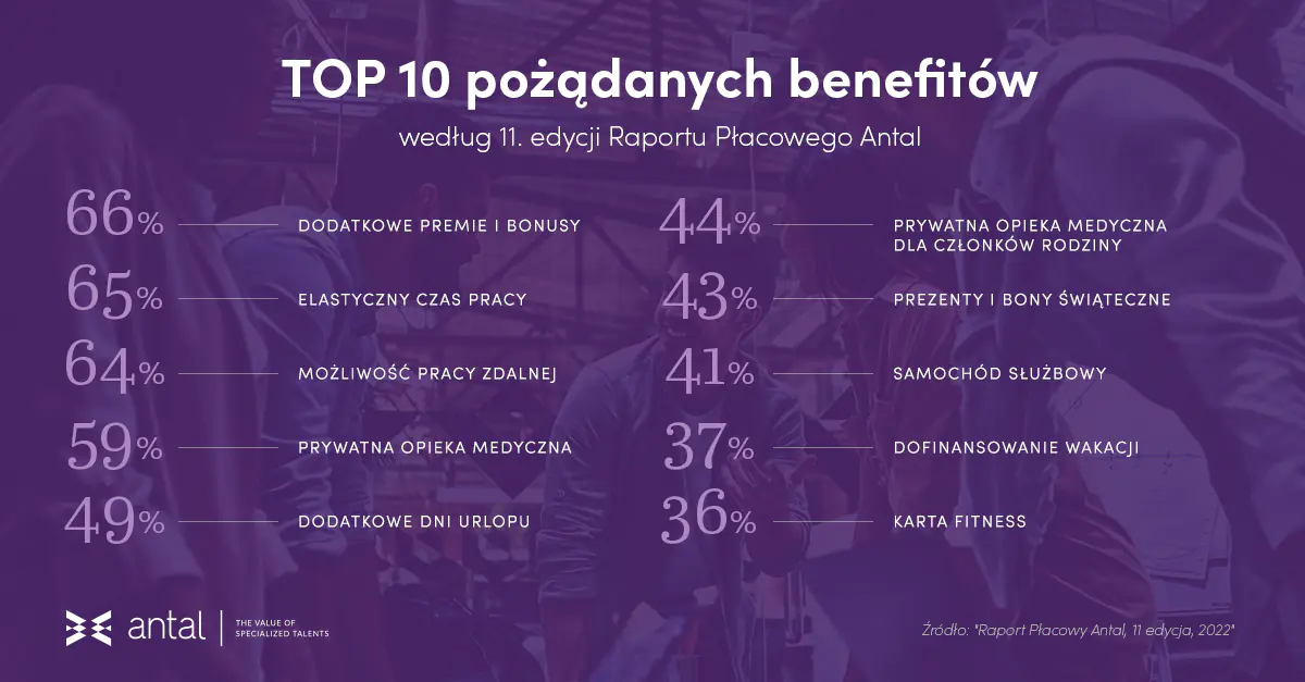 Benefitami, które mocno zyskały na znaczeniu i pracodawcy oferują je najchętniej są prezenty i bony świąteczne, na co zapewne miała wpływ poprawiająca się sytuacja gospodarcza. W stosunku do poprzedniej edycji raportu ich wzrost nastąpił o 8 p.p. i oferuje je 42% firm. Na znaczeniu zyskały także benefity w postaci miejsca parkingowego (wzrost o 3 p.p.) oraz dofinansowanie do ubezpieczenia emerytalnego (wzrost o 5 p.p.)