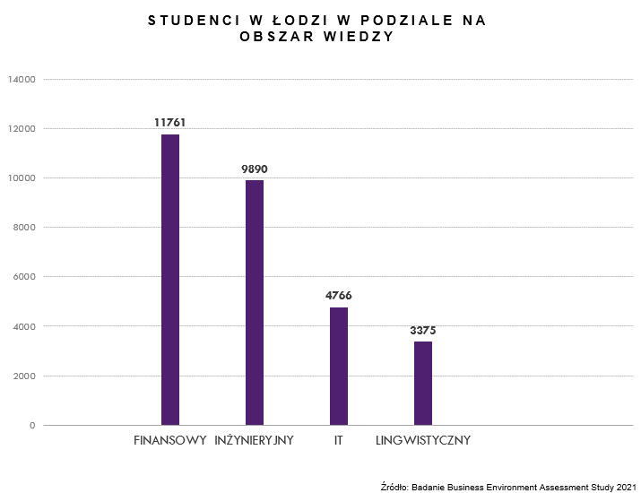 Dziewiętnaście uczelni wyższych, a wśród nich największa państwowa uczelnia w województwie łódzkim, gwarantują bogate zaplecze kompetencyjne. Łódź liczy sobie 75,7 tys. studentów. Najwięcej z nich specjalizuje się w obszarze finansów (11,7 tys.), potem w obszarze inżynieryjnym (9,9 tys.) a następnie w IT (4,7 tys.). Kapitał ludzki został oceniony na 7,0 p w dziesięciostopniowej skali. Na rzecz współpracy z biznesem powstał program „Młodzi w Łodzi”, który wspiera rozwój kariery zawodowej studentów, zachęcając młodych ludzi do wiązania swojej przyszłości z miastem.