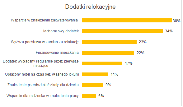 Specjaliści, którzy decydują się na relokację mogą liczyć na dodatek finansowy do podstawy wynagrodzenia wynoszący od 2500 zł brutto do niemal 10 tys. zł brutto. Średnia wysokość premii relokacyjnej wynosi na poziomie 4400 zł brutto. Z kolei przeciętny pakiet relokacyjny dla menedżerów oscyluje między 5700 zł brutto a ponad 16 tys. złotych, co średnio daje 6450 zł brutto.